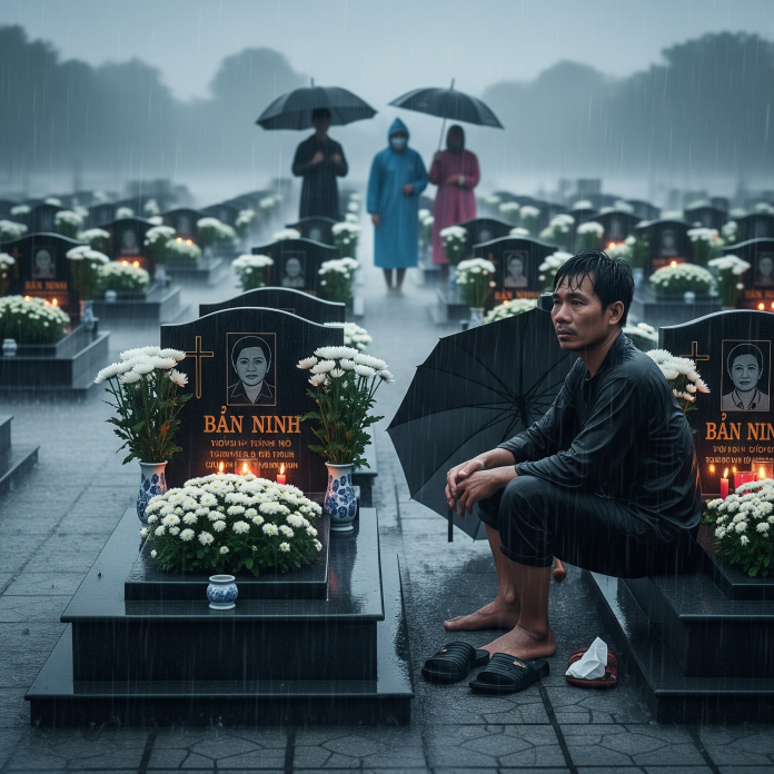 Tang lễ diễn ra đơn giản, chỉ vài người thân và bạn bè thân thiết. Minh lặng im suốt buổi, không nói một câu nào, chỉ đứng đó nhìn chiếc quan tài hạ dần xuống huyệt. Cô từng nói nếu có mệnh hệ gì, hãy tổ chức đơn giản, không ồn ào, không nước mắt phô trương. “Em không thích ồn ào, anh biết mà.” Giờ đây, câu nói ấy vang lên trong đầu anh, từng chữ như dao cứa.