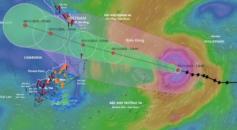 Dự báo thời tiết hôm nay 6.11, bão số 13 Kalmaegi tiến sát khu vực đất liền khu vực miền Trung Việt Nam, gây mưa dông dữ dội trên diện rộng.