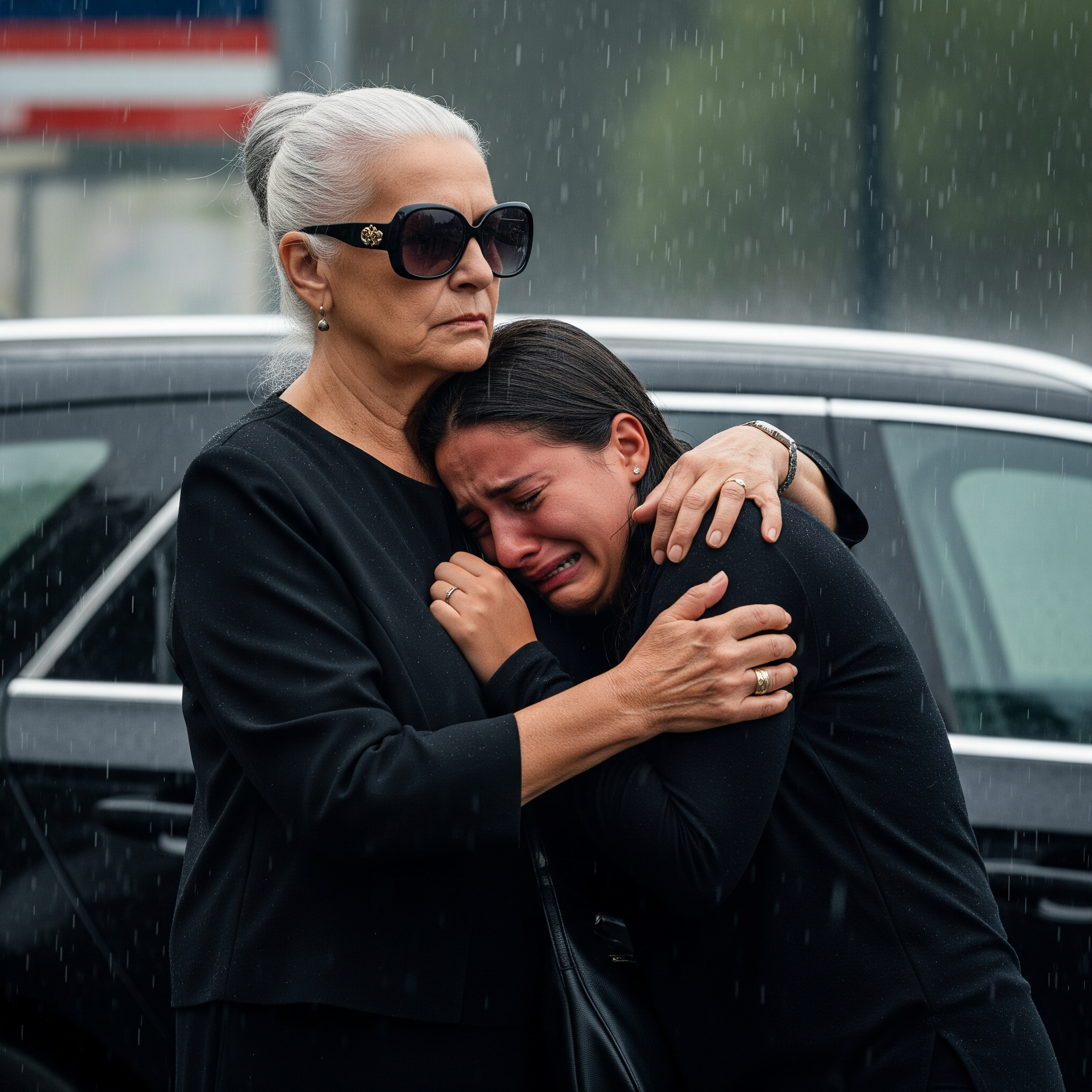Clara asintió. Apenas unos minutos después, un Mercedes negro se detuvo junto al bordillo. El conductor, un hombre alto de traje oscuro, bajó corriendo con un paraguas.