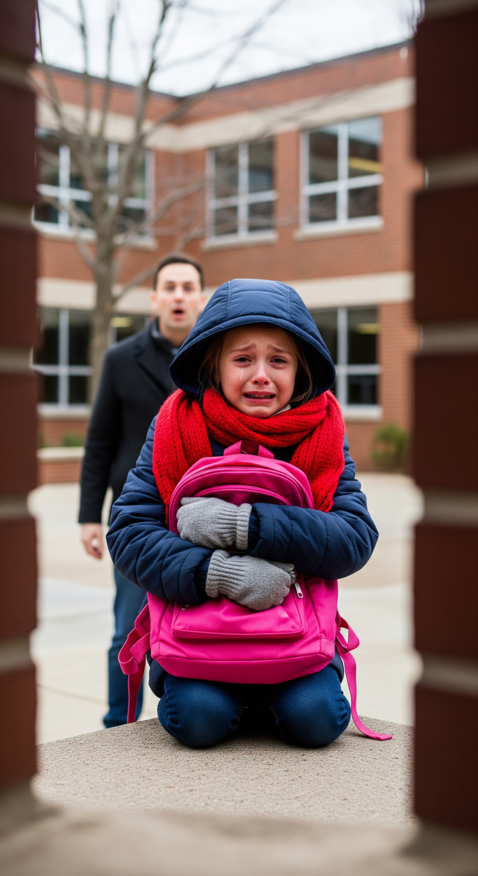 I looked down at my daughter, Sophie, seven years old, clutching her sweatshirt and shivering on the cold concrete outside the school. Her small cheeks were flushed red, not from the cold alone, but from worry and exhaustion.