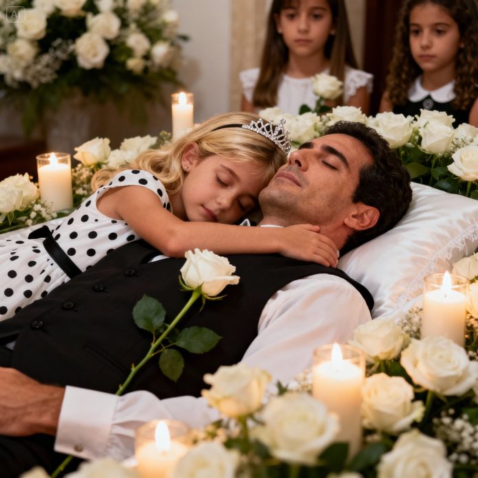 El salón del velorio estaba cubierto por un silencio espeso, interrumpido solo por los murmullos de los adultos y el sonido del incienso ardiendo. Mi padre yacía dentro del ataúd, con el rostro sereno, como si durmiera después de años de fatiga. Mi hermana pequeña, Lucía, de ocho años, no se movía de su lado. Había pasado horas allí, inmóvil, con los ojos fijos en su cara. Nadie conseguía apartarla.