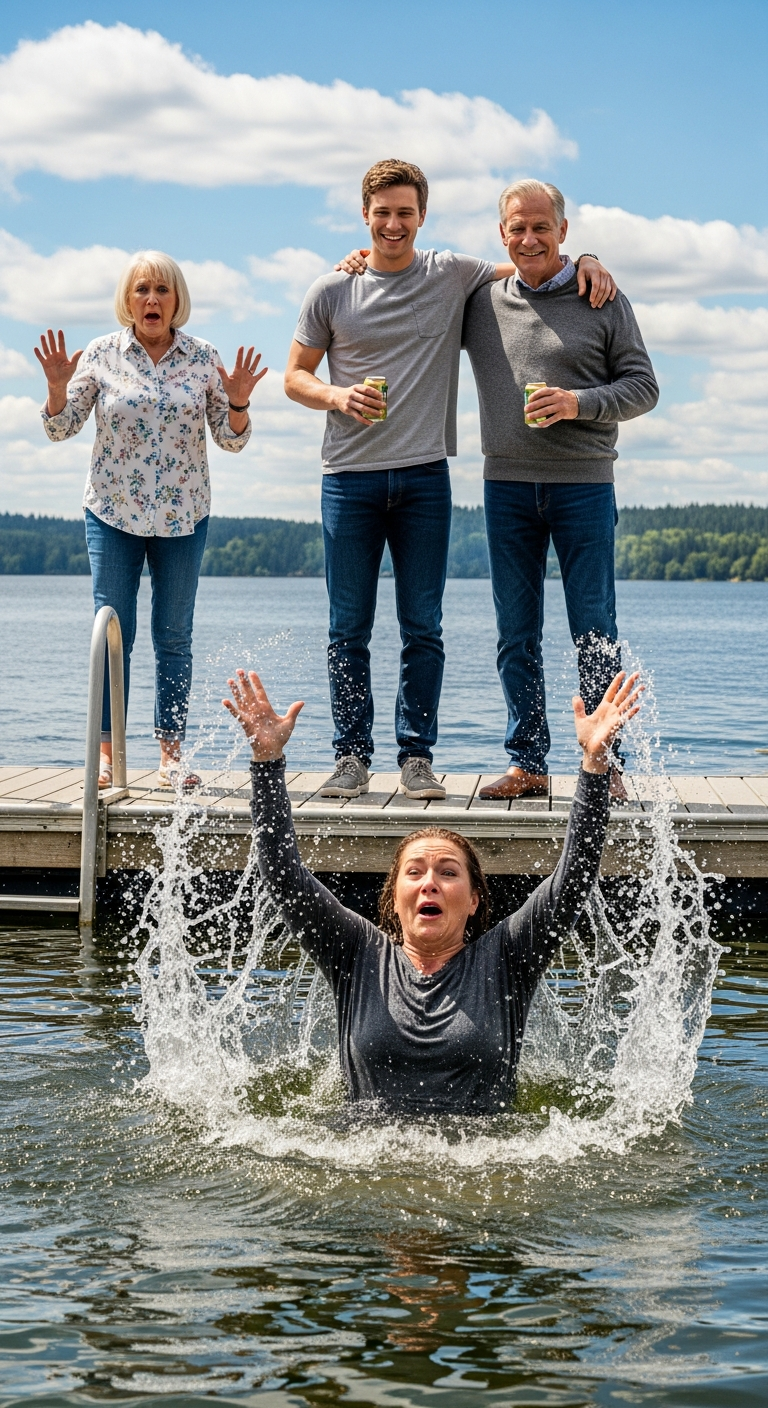 I sprinted toward the lake, diving in without hesitation. Emily flailed violently, and I grabbed her, pulling her onto the dock. She coughed, shaking violently, but she was alive. Derek and Leonard stared, finally realizing she wasn’t sinking quietly into the lake as they expected.