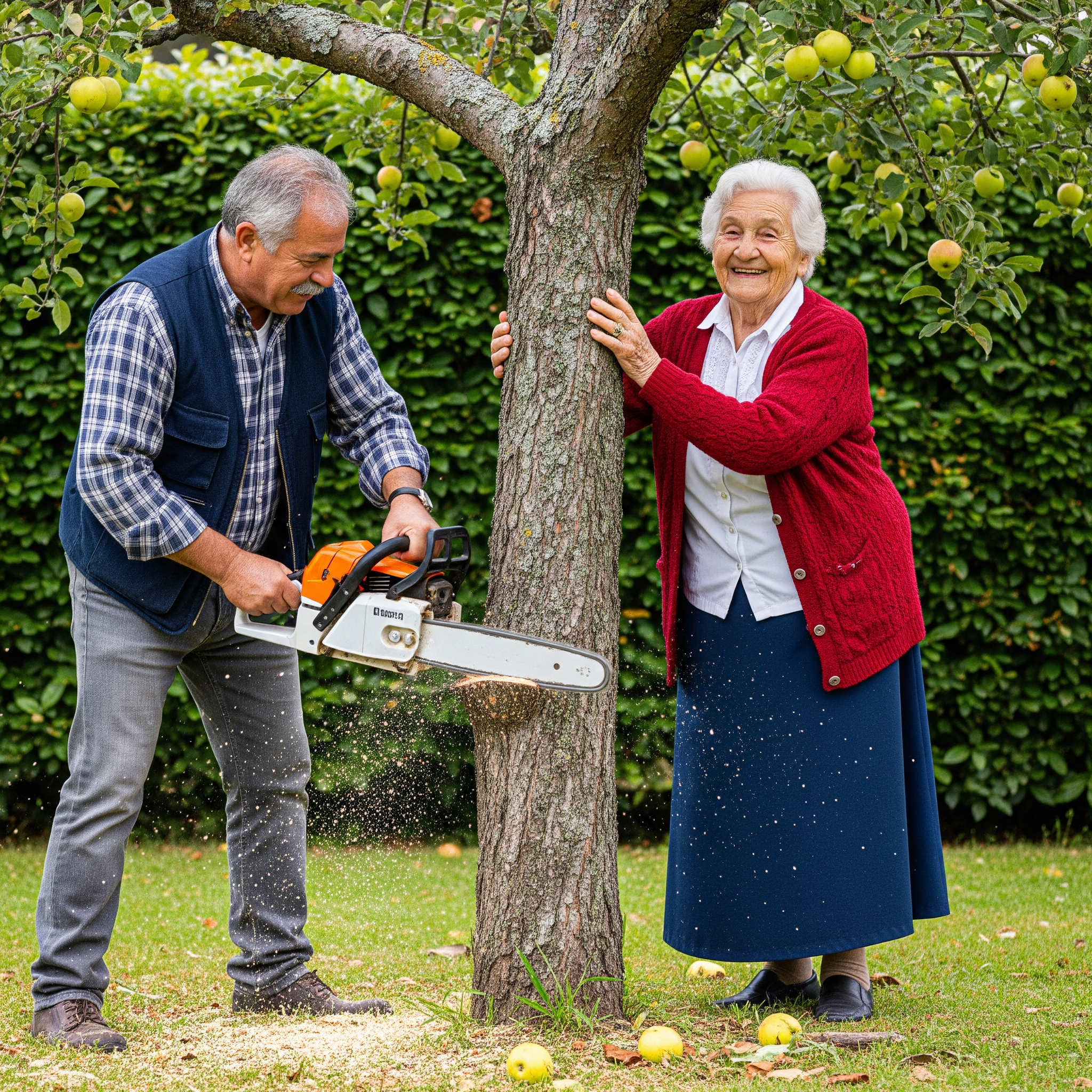 A la mañana siguiente, pedí las grabaciones de la cámara de seguridad que apuntaba al jardín. Ver las imágenes me produjo un nudo en el estómago: dos hombres con motosierras entrando por el lateral, señalando hacia la casa de Faye, recibiendo instrucciones claras. No había casualidad, no había buena intención. Era una decisión premeditada.