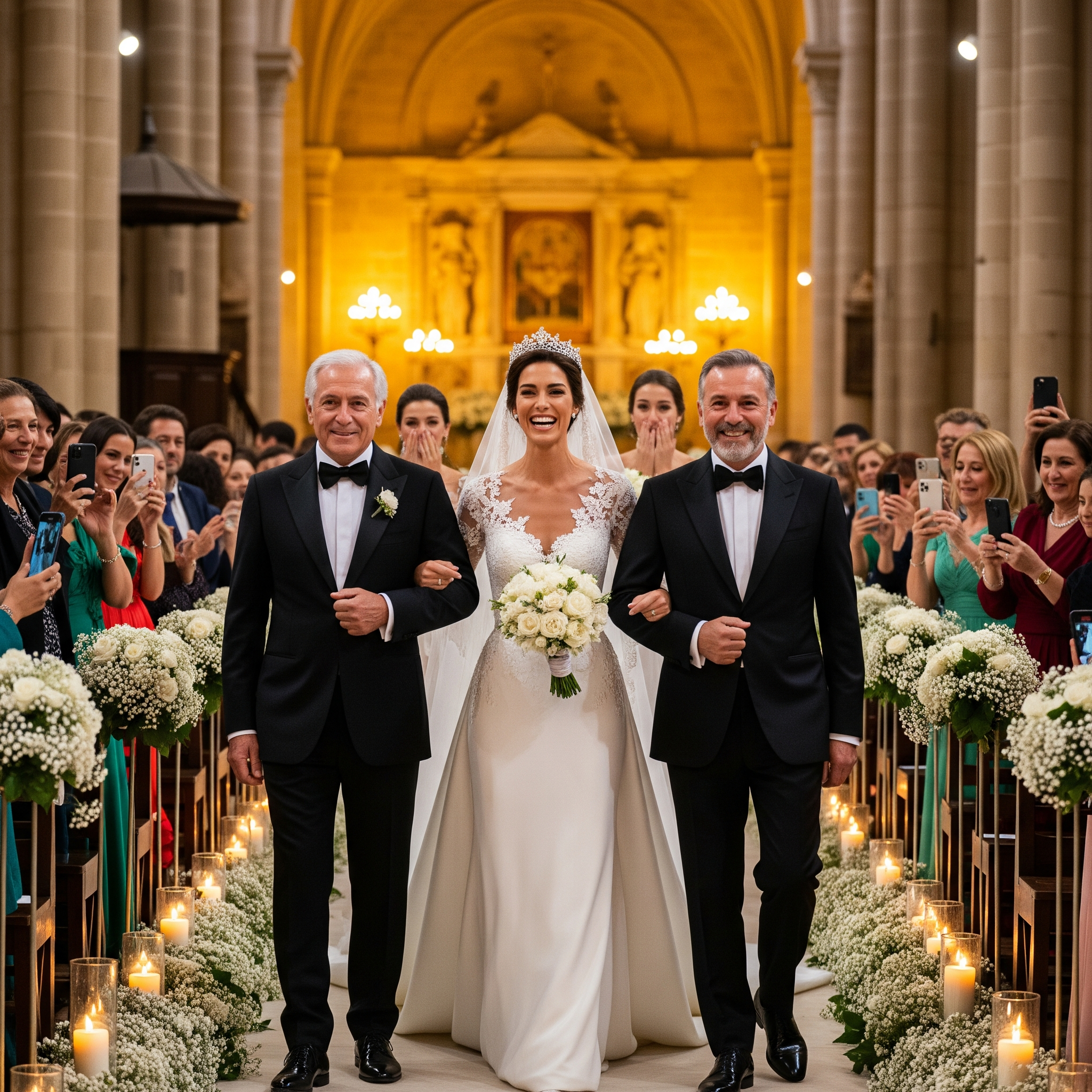 Andrea llevaba un vestido blanco perla, entallado, largo, con encaje francés y una cola corta. Un diseño digno de una boda propia. No se parecía en nada al vestido sencillo que me había enseñado semanas atrás. Esto era otro nivel. Era un intento evidente de opacar.