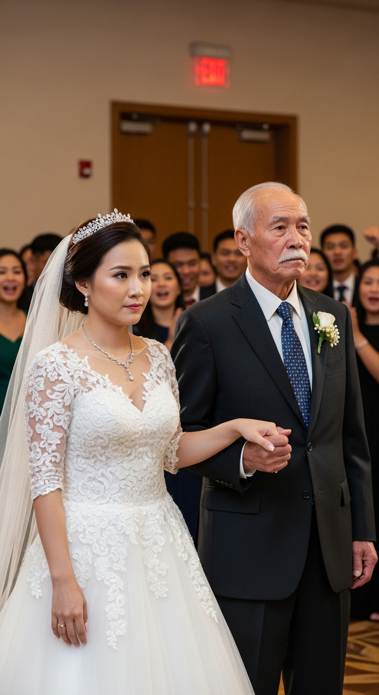 At the center of it all stood Maya Thompson, the 29-year-old owner of a small but beloved bakery. Her ivory dress flowed beautifully, yet her smile faltered each time she caught another pair of mocking eyes. Even her own father, Daniel, crossed his arms and muttered, “This is madness. She’s throwing her life away.”