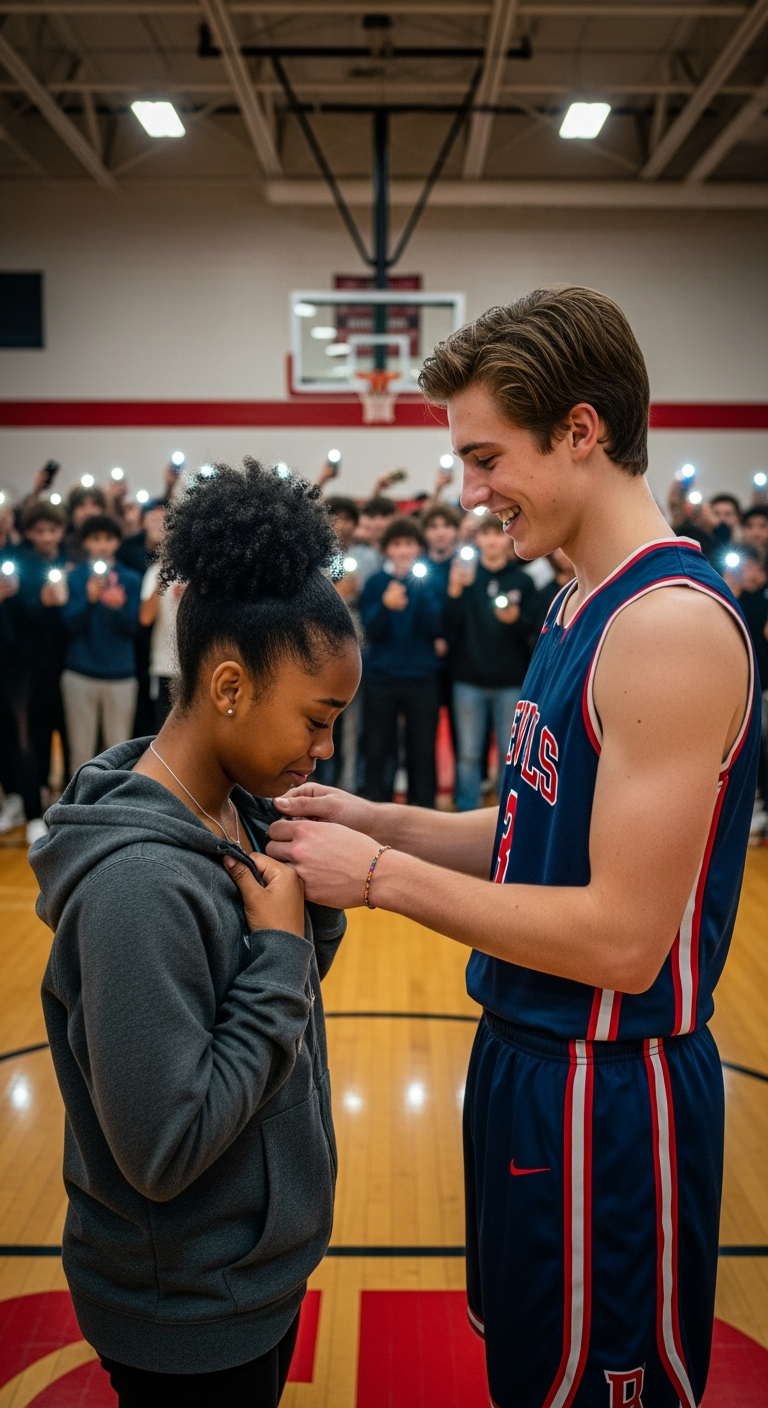 The gym buzzed like a hive — sneakers squeaking, lockers slamming, voices echoing as a crowd formed fast. Word spread in seconds: Caleb Mercer, the star basketball captain and unofficial king of Ridgewood High, was about to “teach someone a lesson.”