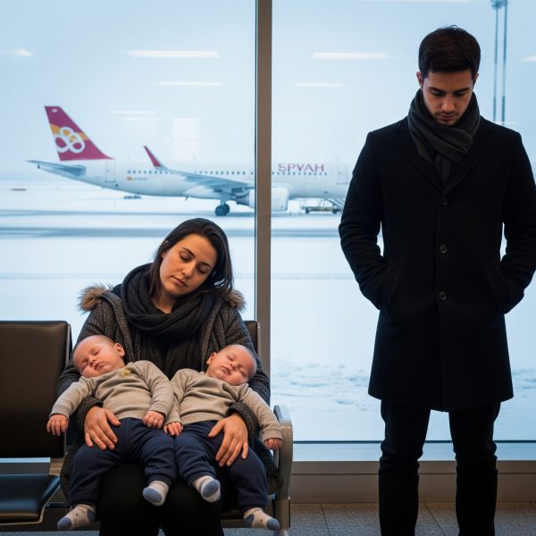 Alejandro acompañó a Clara y a los niños a una zona más tranquila del aeropuerto, lejos del bullicio. Ella parecía acorralada, como si cada segundo aumentara el peso sobre sus hombros. Los gemelos se entretuvieron con una pequeña pantalla táctil en la pared mientras los adultos se sentaron en un banco frío de metal.