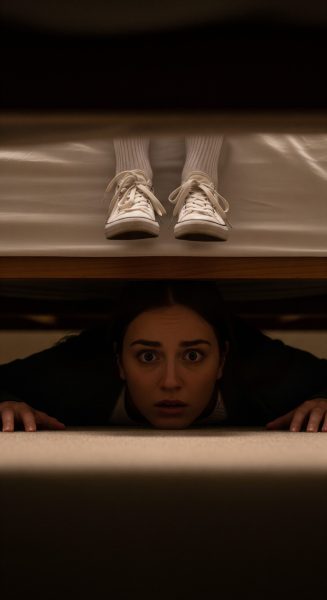 I clamped a hand over my mouth as his shadow shifted. Slowly… terrifyingly… he lowered himself, bending down to look under the bed.
