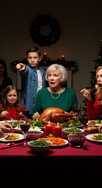 During the festive dinner, my mother-in-law berated my 5-year-old, and nobody reacted. Then my 8-year-old son quietly reminded everyone of what she had instructed him to hide. Every face at the table froze in disbelief.