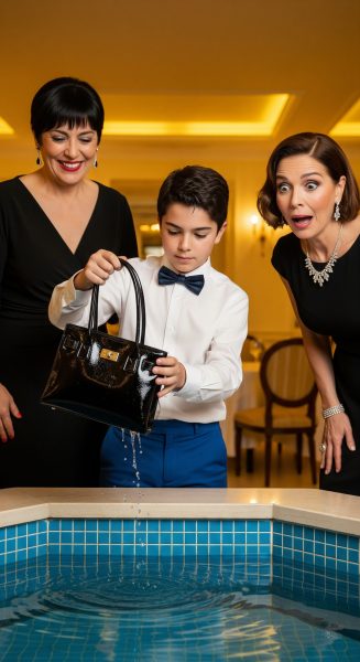 Mientras esperábamos el postre, mi sobrino Mateo —quince años, mucho ego heredado y cero límites— se levantó sin decir nada. Vi cómo se acercó a mi bolso, que había dejado sobre una silla al lado. Pensé que quería tomar algo o jugar una broma inocente. Pero no. Con un movimiento brusco lo agarró y, antes de que pudiera reaccionar, corrió hacia la terraza donde estaba la piscina del restaurante.