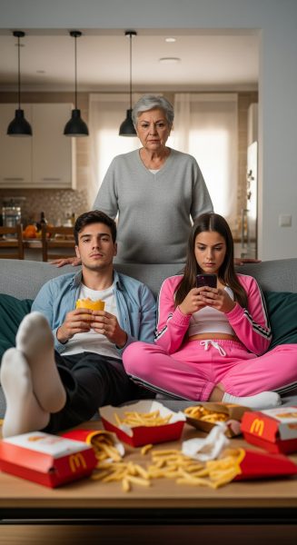 Cuando llegué a casa, el aire estaba impregnado del olor a comida recalentada. Lucía me miró desde el sofá sin mover ni un dedo.