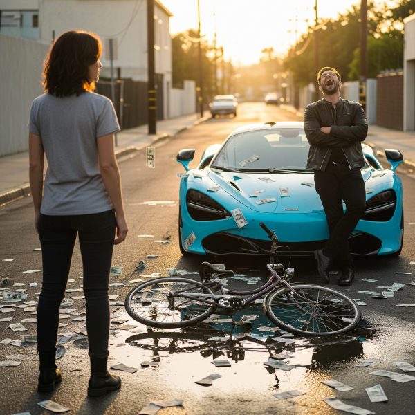 There was the McLaren. Speeding. Running the red light. Hitting me and my bike without slowing. There was Chase stepping out, throwing cash at me, then driving away.