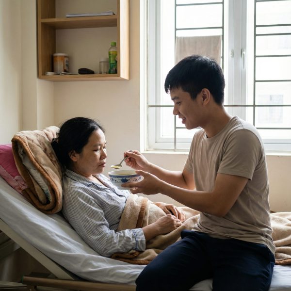 Hai bàn tay Minh đang giữ lấy vai vợ anh. Vợ anh – Hạnh, người đã 5 năm không nhấc nổi cánh tay – bỗng đang cố ngồi dậy. Mồ hôi rịn trên trán cô, gương mặt căng thẳng, và… đôi mắt cô mở to, sáng hơn anh từng thấy trong nhiều năm qua.