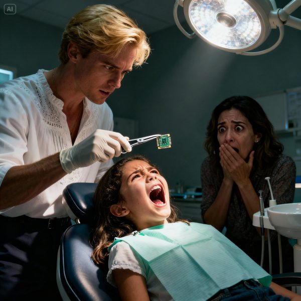 No respondió. Regresó a la silla, encendió otra luz más intensa y, con unas pinzas finas, empezó a apartar la encía inflamada. Lucía gimió. Entonces el doctor se detuvo, respiró entrecortado y tiró suavemente de algo.