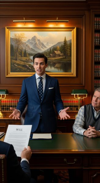 The conference room at Carter & Lewins Legal Associates smelled faintly of old wood and polished brass. I sat stiffly at the end of the long table, my calloused hands folded together, trying not to show how out of place I felt. My name is Daniel Pierce, sixty-three years old, a carpenter from rural Oregon. I was never meant to be in a room filled with millionaires and attorneys. But my daughter, Emily Pierce-Harrington, had passed away three weeks earlier after a sudden stroke, and today was the reading of her will.