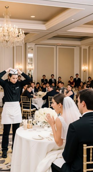 A hush fell over the hall as she approached the microphone. The wedding planner tried to stop her, but Emma simply removed her uniform hat, revealing her long brown hair, her face pale but determined.