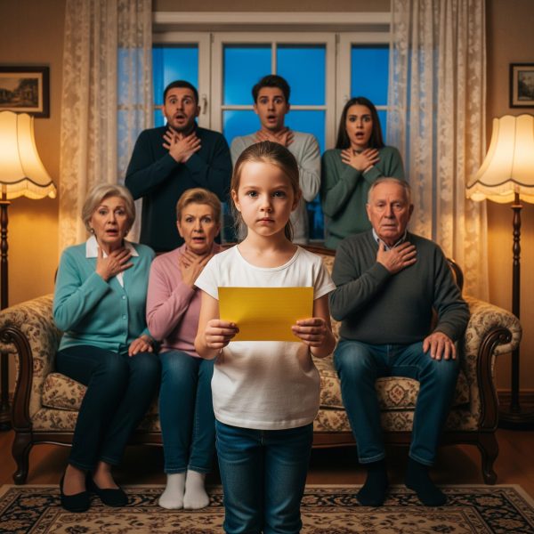 My parents stood frozen on the porch, eyes darting back and forth between the envelope’s contents and my daughter’s steady gaze. My father’s lips parted like he wanted to speak, but no words came out.