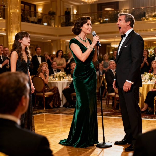His mistress tried to slip toward the exit, but a waiter accidentally blocked her path, causing an awkward shuffle that drew even more attention. Richard saw her and groaned under his breath—caught in every possible way.