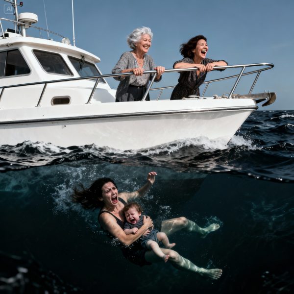 But the police officers were focused on the video looping on the TV. It was footage from the cruise boat’s security system—the deck camera. The angle was perfect. It captured everything: my mother approaching me, my sister right beside her, the shove, Liam’s terrified cry, our bodies flying over the railing.