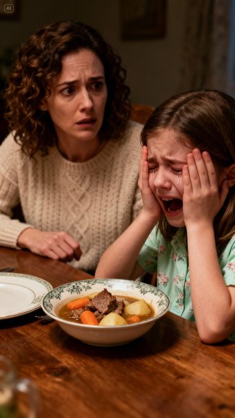 I had spent the afternoon playing with her—coloring books, building blocks, even making up a silly dance routine. When dinner time came, I made a simple beef stew, the same one my two sons loved. I placed the bowl in front of her, expecting her to dig right in.
