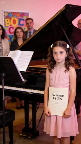 She began to play. The first notes wavered, then steadied, but the audience barely paid attention. A few parents scrolled on their phones. The judges—a local realtor, a retired music teacher, and a PTA board member—watched with blank expressions. No encouraging nods. No smiles.