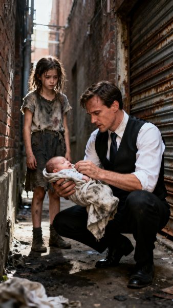 Ella estaba descalza en el callejón, aferrando un pequeño bulto.