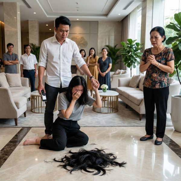 Cô ta khóc. Lần này là khóc thật. Tôi không vui khi thấy nước mắt ấy. Tôi chỉ thấy mệt. Anh ta cúi đầu, nói xin lỗi cả hai. Lời xin lỗi rơi xuống đất, vỡ vụn. Người ta bắt đầu bàn tán về pháp luật, về trách nhiệm, về đứa trẻ sắp sinh. Không ai còn nói đến cạo đầu.