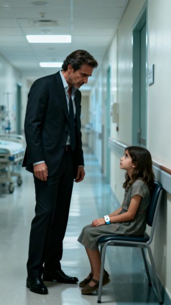 Entré a ese hospital convencido de que el dinero podía arreglarlo todo. Yo, un multimillonario acostumbrado a comprar silencios y salidas rápidas, solo quería firmar unos papeles y marcharme. Entonces la vi: una niña pequeña, sola en el pasillo, con una pulsera médica más grande que su muñeca. Me miró y dijo algo tan simple que me dejó sin aliento. En ese instante, entendí que ninguna fortuna me había preparado para lo que estaba a punto de descubrir… ni para la decisión que cambiaría mi vida.