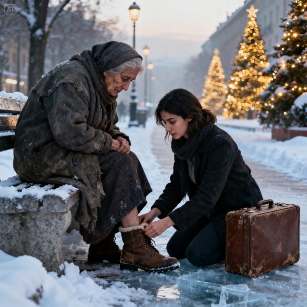 Lo que me partió el corazón no fue solo su llanto, sino sus pies. Estaba descalza. Sus pies, hinchados y amoratados, descansaban directamente sobre el hielo. La imagen era insoportable. Miré mis propias botas de invierno, robustas, forradas de lana, calientes. Miré la maleta donde tenía ropa, pero nada de calzado extra. No lo pensé. La lógica de la supervivencia me gritaba que no lo hiciera, pero mi humanidad gritaba más fuerte.