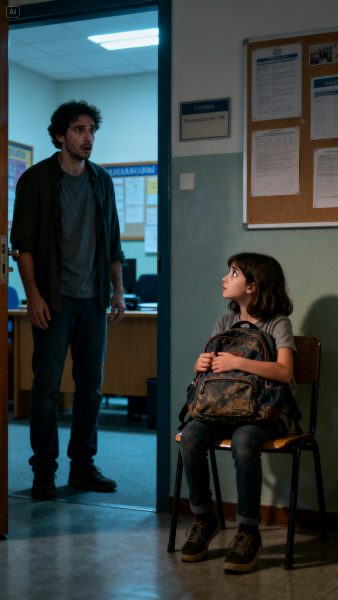 La escuela llamó diciendo que mi hija llevaba tres horas sin que nadie la recogiera. Les respondí, confundido: “No tengo hija. Tengo 28 años y estoy soltero”. Me amenazaron con llamar a la policía por negligencia infantil. Sin entender nada, conduje hasta allí. Al entrar a la oficina, vi a una niña pequeña sentada sola, abrazando su mochila. Cuando levantó la vista y me miró a los ojos, sentí que el estómago se me hundía. Porque su cara… se parecía demasiado a la mía.