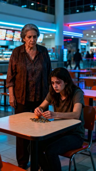 Estaba sentada en una mesa pequeña de la cafetería del centro comercial de Alcobendas, con la espalda encorvada y los hombros tensos. Delante tenía un café casi frío y un pequeño montón de monedas extendidas sobre la mesa. Las contaba despacio, una por una, con las manos temblorosas.