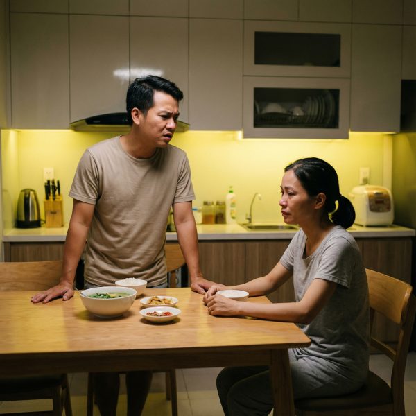 Bữa cơm hôm đó, anh vẫn nói chuyện nhà nội bằng giọng đầy hào hứng. Nào là bà nội khen anh hiếu thảo, nào là cô chú trong họ lấy anh ra làm gương. Tôi lặng lẽ dọn bát, cảm giác mình như người ngoài trong chính căn nhà của mình.