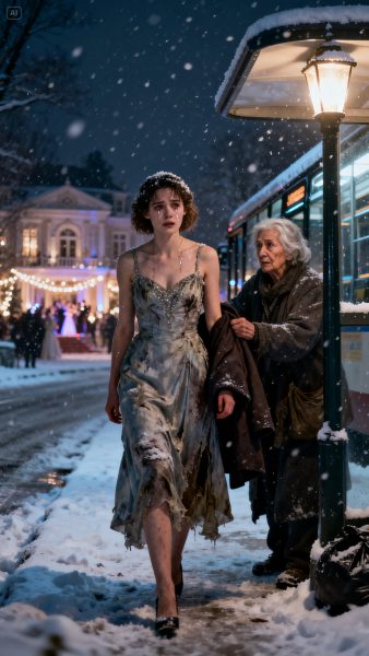 Una anciana estaba sentada a mi lado. Ropa gastada. Zapatos rotos. Parecía indigente. Sin decir nada, se levantó, me quitó el abrigo —el único que me quedaba— y me miró fijamente.
