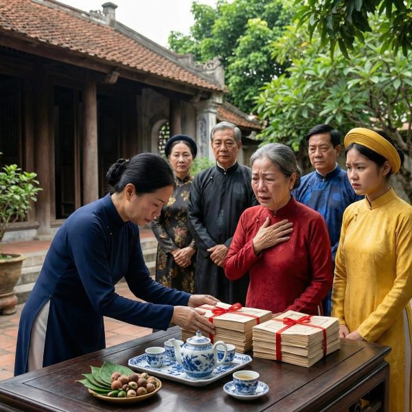 Lúc ấy, tôi mới nhẹ nhàng đứng lên, mở cặp hồ sơ đã chuẩn bị sẵn. Tôi đặt từng tờ giấy lên bàn: sổ đỏ, hợp đồng tặng cho nhà, giấy xác nhận tài sản trước hôn nhân.