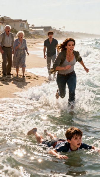 “No! You don’t understand. He’s just seven! He’s in the ocean alone!” Rage and fear collided, and I bolted across the sand, adrenaline surging. My brother froze in shock, but I didn’t have time for hesitation.