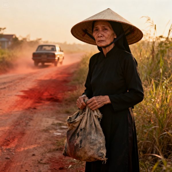 Tôi không nghi ngờ gì. Chiếc xe là do chồng tôi mua, đứng tên con, nhưng tiền là của gia đình. Tôi ngồi ghế sau, ôm chiếc túi cũ đựng vài bộ đồ tang. Xe chạy rất lâu, rời khỏi khu dân cư, tiến dần vào con đường đất đỏ vắng người.