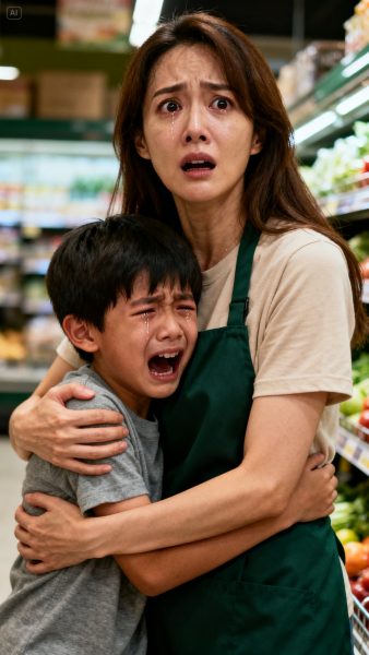 The evening shift at the supermarket was dragging when the automatic doors flew open, letting in a blast of cold air—and my six-year-old son.