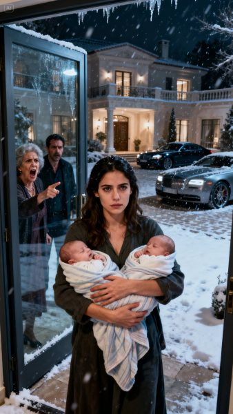 “Lárgate y llévate a tus bastardos”, gritó mi suegra mientras me escupía. Mi esposo no dudó: me empujó al frío con mis gemelos de apenas diez días. Para ellos, yo era solo una diseñadora pobre, desechable. No sabían que la casa, los autos y la empresa donde él trabajaba me pertenecían. De pie en la noche helada, hice una sola llamada. No para pedir ayuda… sino para activar una verdad que los haría rogar por la miseria que me impusieron.