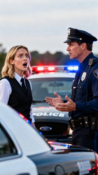 When I pulled onto our street, my stomach dropped. Three police cars were parked in front of our house. Red and blue lights flashed silently. A uniformed officer stepped forward as I parked.