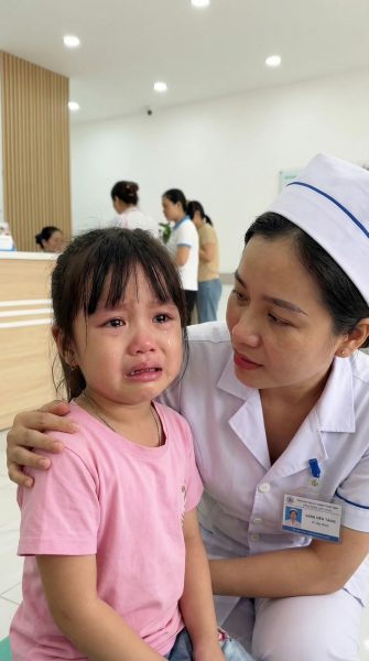 Y tá đứng cạnh quay đi. Những lời ấy, người lớn nghe còn nặng, huống chi là một đứa trẻ.