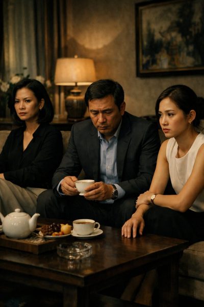 Sau bữa tiệc, khi khách khứa đã về hết, anh ta ngồi đối diện tôi, rót trà, nói chuyện như bàn công việc: