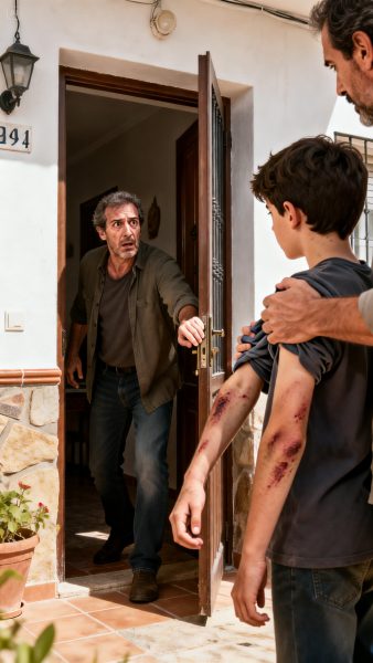 Cuando el padre abrió la puerta, me presenté con calma tensa. Le expliqué la situación. Él frunció el ceño, molesto, hasta que Daniel se acercó y, sin decir nada, levantó lentamente las mangas.