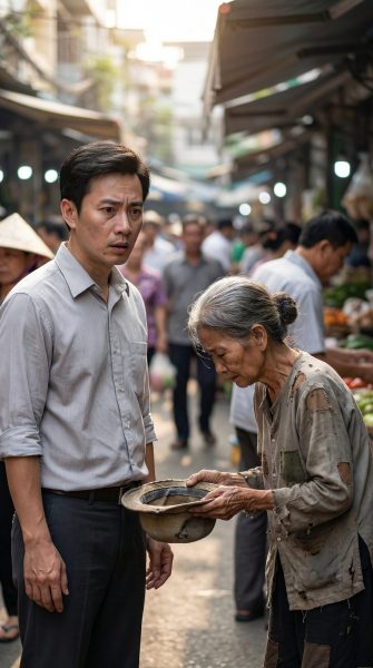 Giữa khu chợ sáng chen chúc, tiếng rao hàng va vào nhau như sóng, tôi bỗng đứng khựng lại. Một dáng người quen mà lạ hiện ra trước mắt: lưng còng xuống, chiếc áo khoác mỏng sờn vai, ống quần rách chỉ, bàn tay run run chìa ra trước mặt người qua đường. Bà cúi đầu rất thấp, thấp đến mức tôi phải nhìn kỹ mới dám tin—đó là mẹ vợ cũ của tôi.