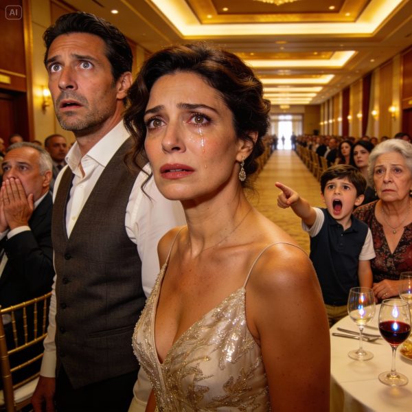 Nadie supo qué hacer durante los primeros segundos. Luego vinieron los murmullos, las sillas moviéndose, alguien apagando la música con torpeza. La mujer se acercó despacio, poniendo una mano sobre el hombro del niño.