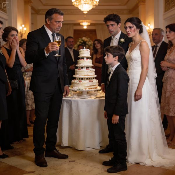 Se levantó despacio, con la copa de cristal en la mano, y el murmullo del salón se apagó como si alguien hubiera bajado el volumen de la música. El restaurante estaba lleno de luces cálidas, flores blancas y sonrisas bien ensayadas. Era nuestra boda. Yo me llamo Laura Mitchell, y ese día me casaba con Daniel Harris, el hombre que había prometido amar y proteger a mi hijo como si fuera suyo.