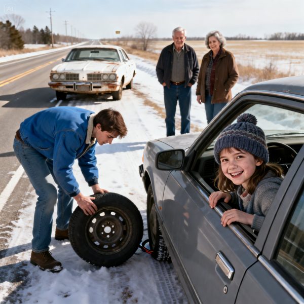 My name is Daniel Harper, and the day I stopped on the highway felt ordinary in every possible way. It was late afternoon, traffic crawling under a gray sky, when I noticed an old sedan pulled onto the shoulder with its hazard lights blinking weakly. An elderly couple stood beside it, clearly overwhelmed. Cars rushed past without slowing.
