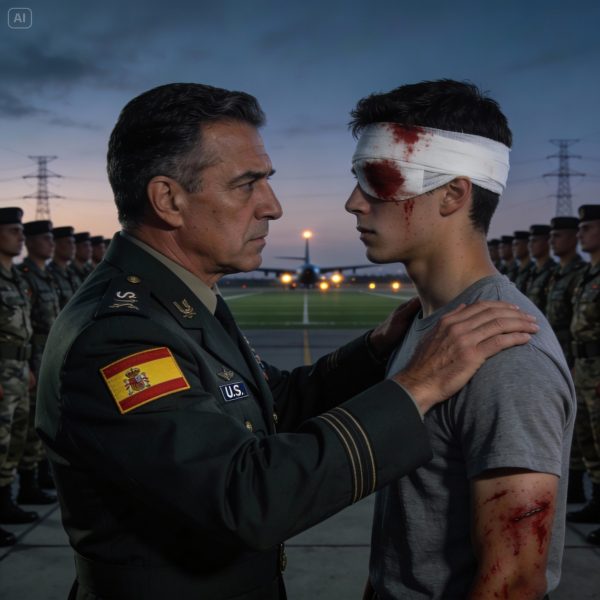 Mi hijo Daniel, dieciséis años, apareció tambaleándose en la entrada de mi base. No lo reconocí al principio: la cara hinchada, un ojo cerrado, la mandíbula torcida. Intentó hablar y solo salió un quejido.