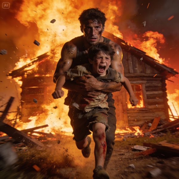 En el pasillo de la planta baja vi a Álvaro caído. Intentaba levantarse, pero el suelo estaba caliente y el humo lo estaba ahogando. Lo levanté por debajo de los brazos, pero en el momento en que lo cargué, una viga crujió arriba. Escuché un estruendo: el techo empezaba a venirse abajo. Lo único que hice fue correr.