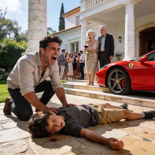 Un Ferrari rojo, brillante, entró al camino de grava como si fuera una pasarela privada. Era del invitado estrella: Rodolfo Bianchi, un empresario italiano con contactos y ego enorme. El coche aceleró de más para impresionar… y Mateo, que jugaba cerca de la entrada con una pelota, dio un paso al frente.