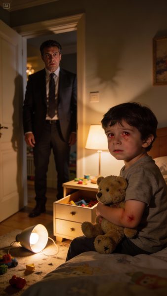 Ethan estaba sentado en la cama, abrazando su oso de peluche, con los ojos rojos e hinchados. Su respiración era irregular, como si hubiera llorado durante horas. Me miró sin sonreír. No corrió hacia mí. No dijo “papá”.